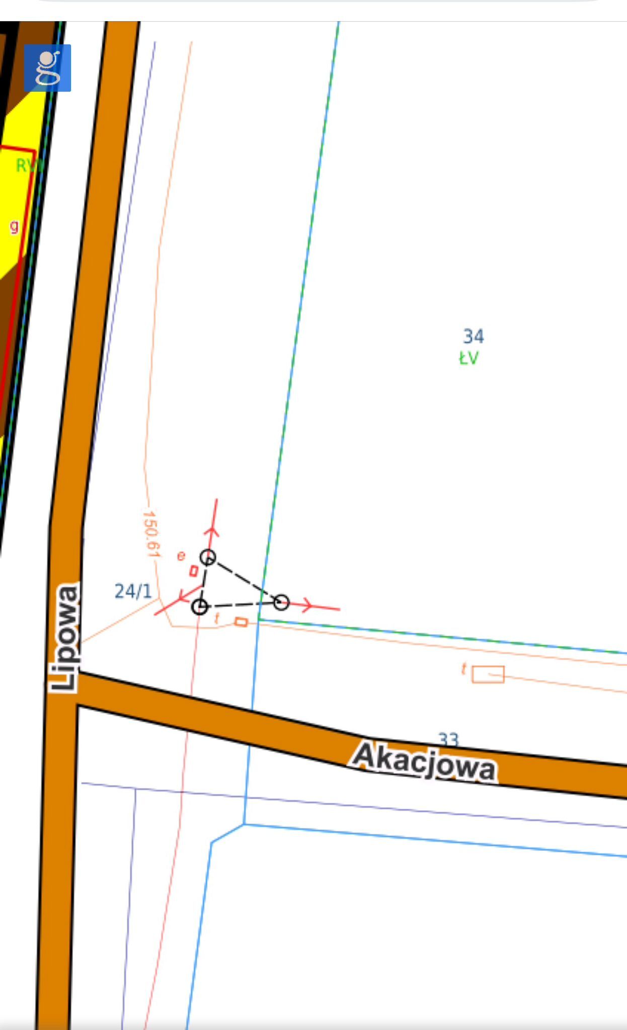 • Dostęp do drogi: bezpośredni, droga gminna ( z działki 24/1 oraz z działki nr 33).