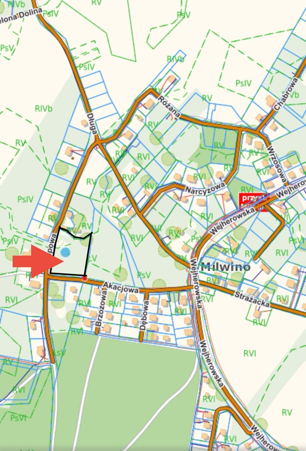 Na sprzedaż atrakcyjna działka o powierzchni 4900 m² położona w spokojnej i malowniczej części wsi Milwino, gmina Luzino, powiat wejherowski. Teren objęty warunkami zabudowy, co umożliwia budowę budynku mieszkalnego jednorodzinnego. Działka narożna, zlokalizowana pomiędzy ulicą Akacjową a Lipową, z bezpośrednim dostępem do drogi gminnej.