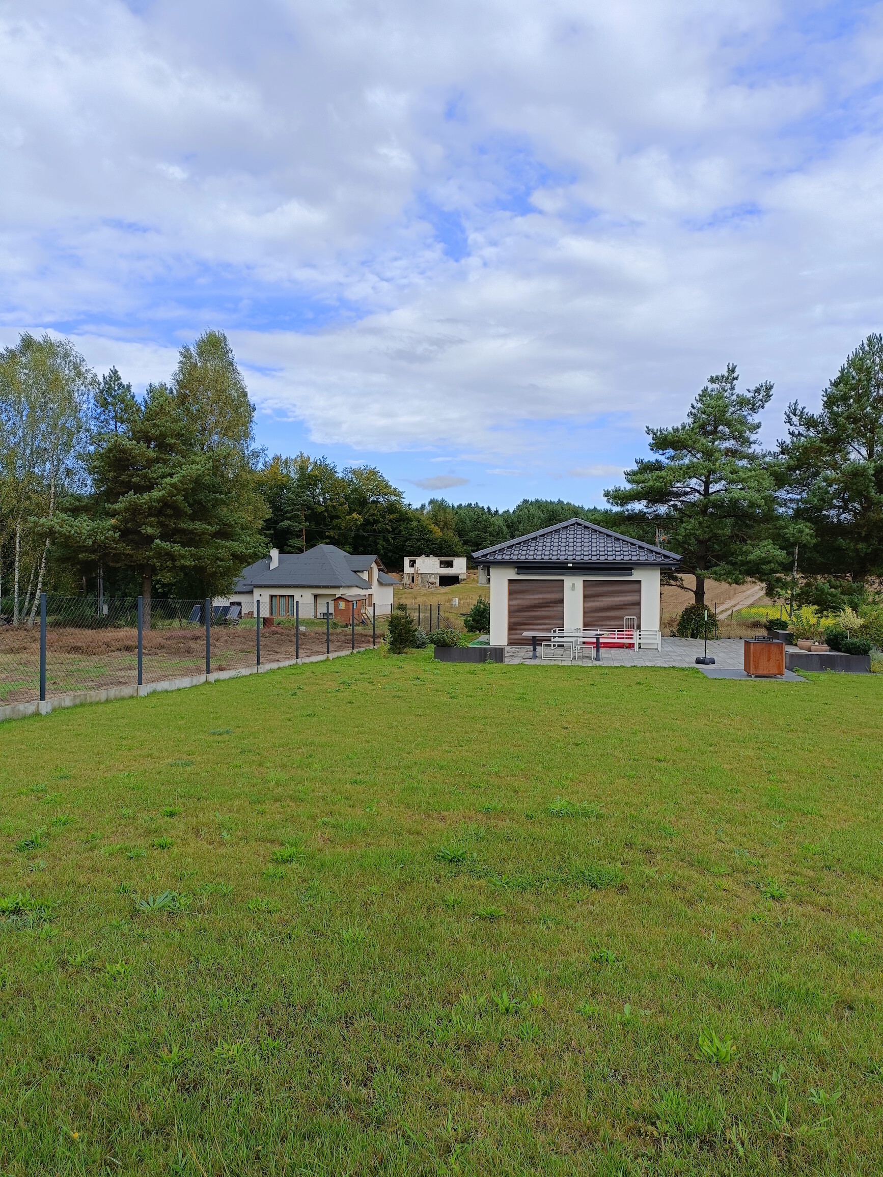 Działka w całości ogrodzona ( podmurówka, siatka), dwie bramy przesuwne, furtka.