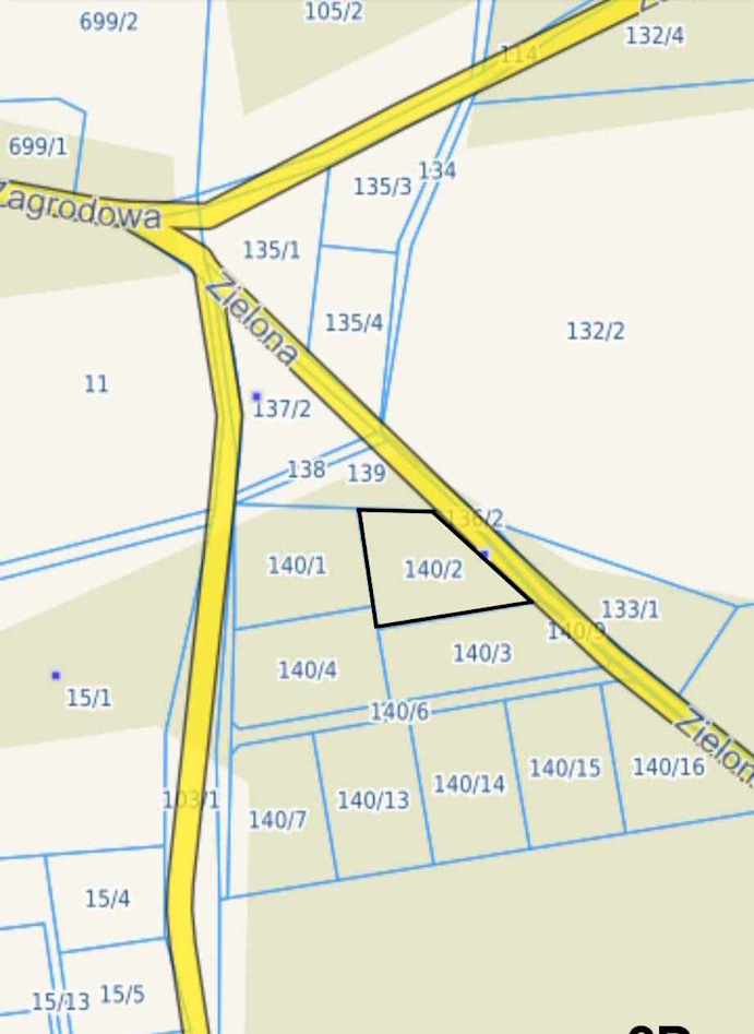w otulinie lasów oraz terenów zielonych. Ma dostęp do gminnej drogi utwardzonej ( ul. Zielona).Oznaczona