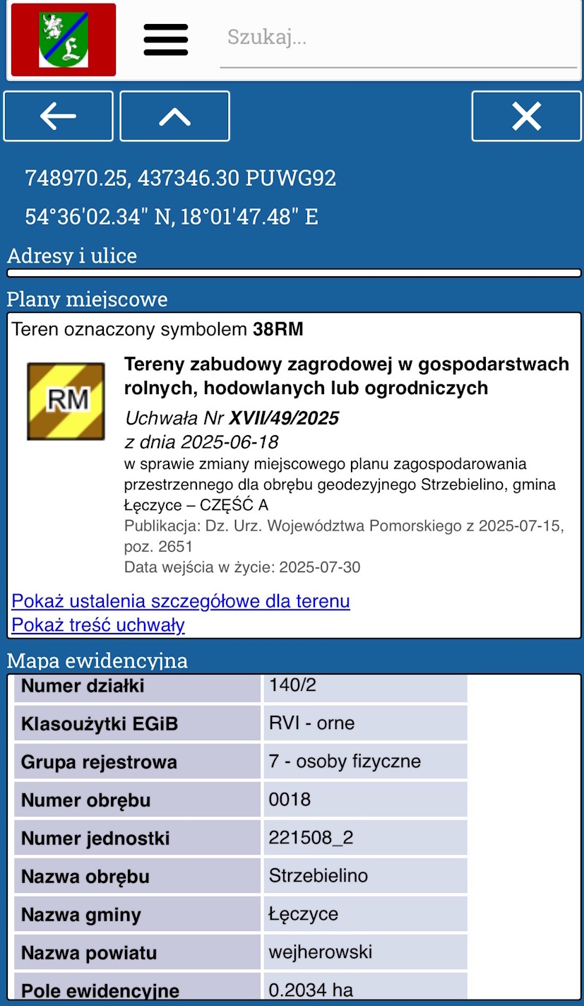 Na danym obszarze obowiązuje MPZP przyjęty Uchwałą Rady Gminy Łęczyce Nr XVII/49/2025 z dnia 2025-06-18: